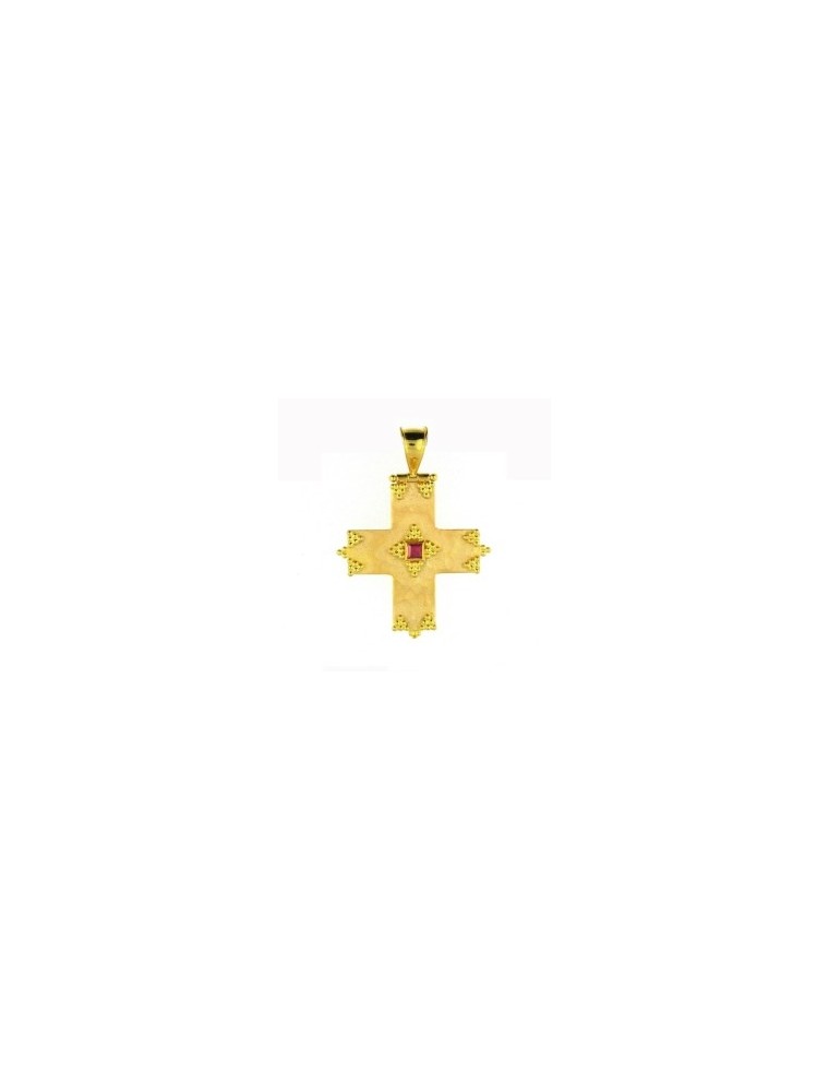 Χειροποίητος σταυρός με ρουμπίνι σε κίτρινο χρυσό 18ΚΤ