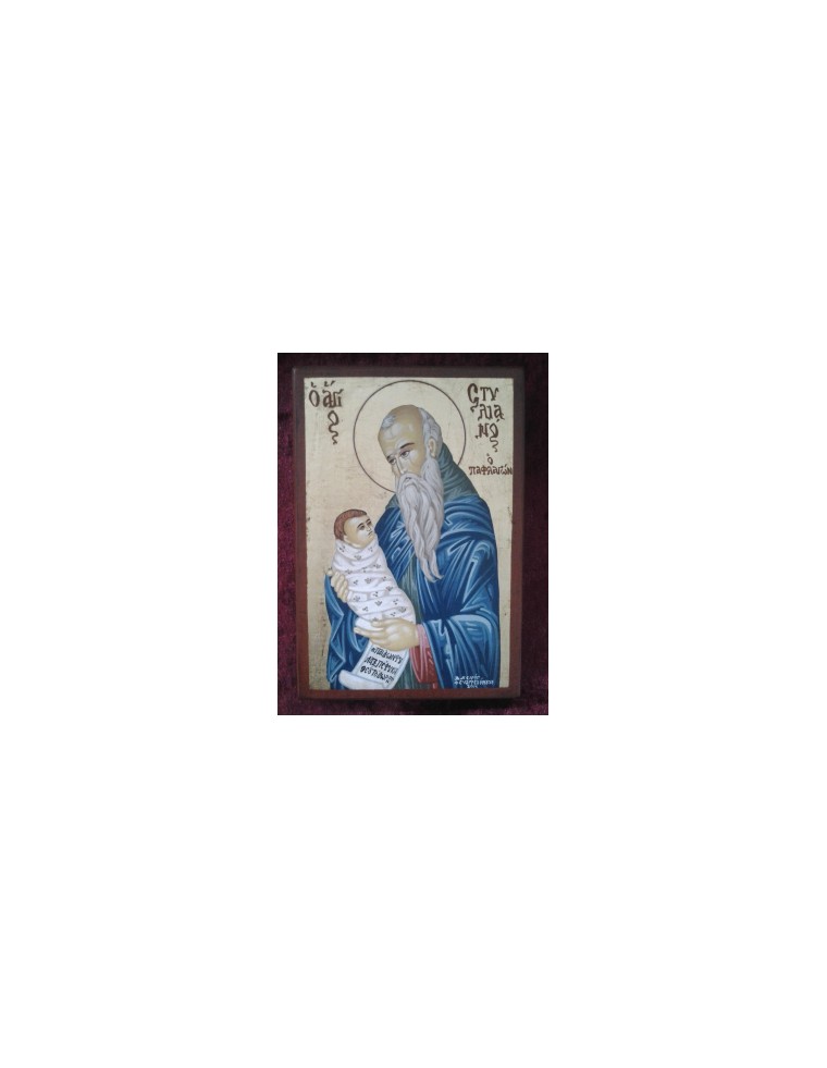 Αγιογραφία Αγίου Στυλιάνου ζωγραφισμένη στο χέρι σε παλαιό ξύλο και καμβά διαστάσεων 10Χ13cm