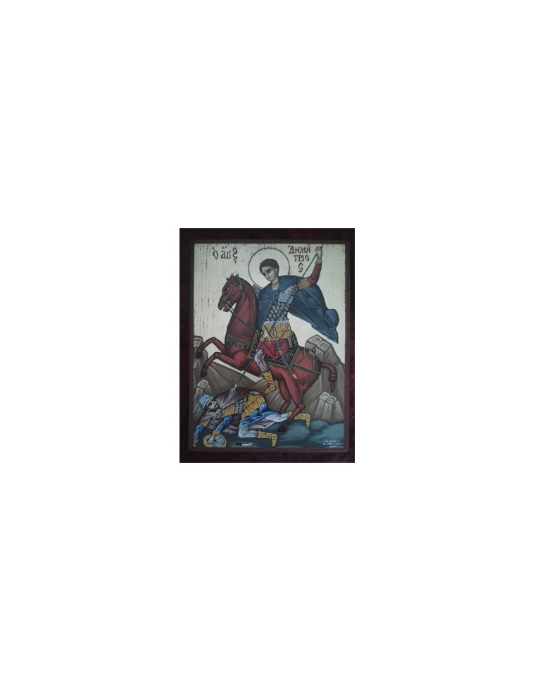 Αγιογραφία Αγίου Δημητρίου ζωγραφισμένη στο χέρι σε παλαιό ξύλο και καμβά διαστάσεων 19Χ25cm