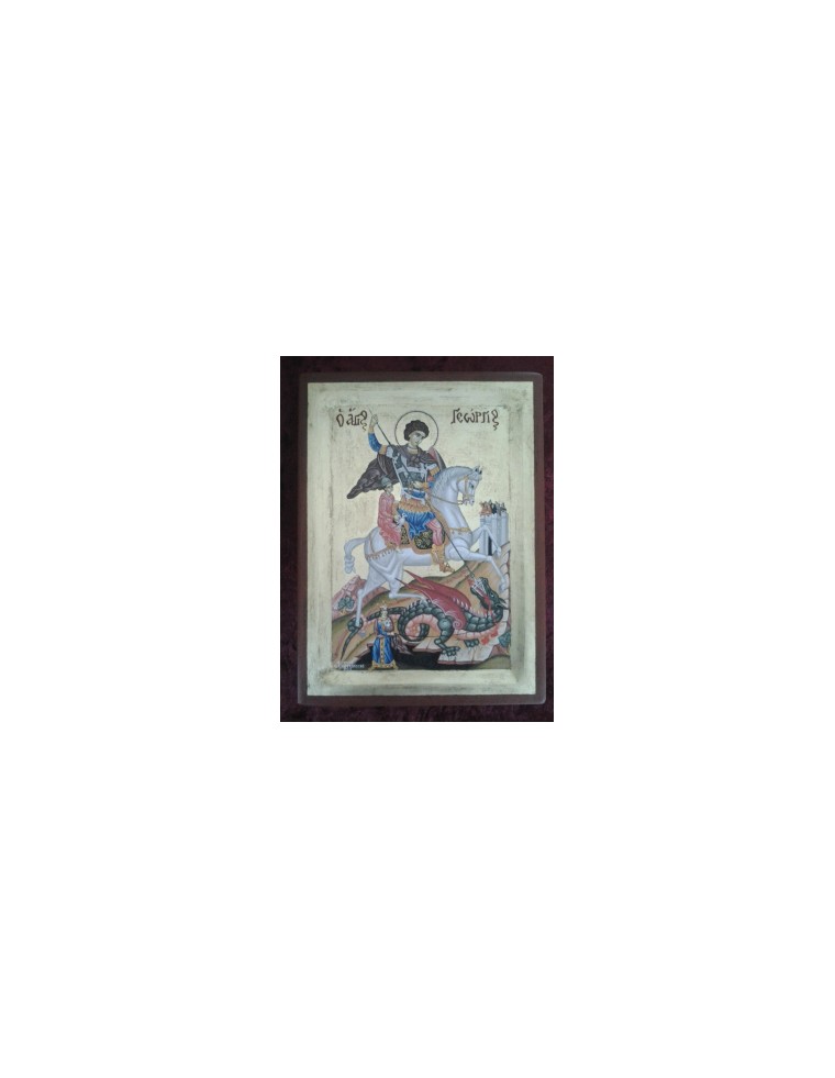 Αγιογραφία Αγίου Γεωργίου, ζωγραφισμένη στο χέρι σε παλαιό ξύλο και καμβά διαστάσεων 25Χ35cm