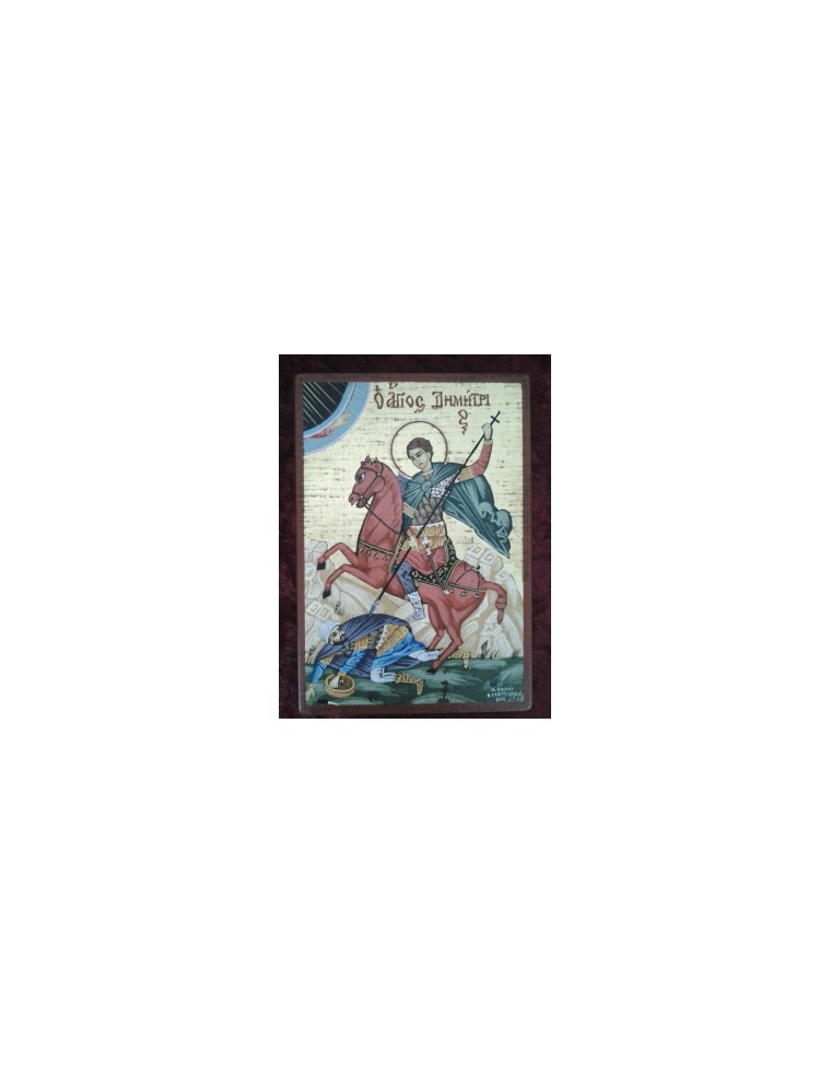 Αγιογραφία Αγίου Δημητρίου ζωγραφισμένη στο χέρι σε παλαιό ξύλο και καμβά διαστάσεων 19Χ25cm